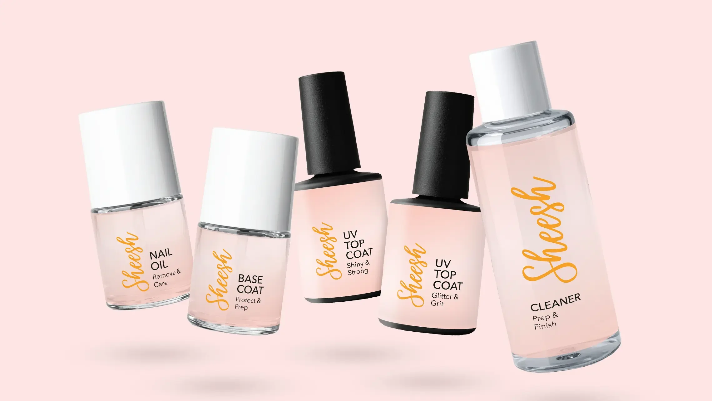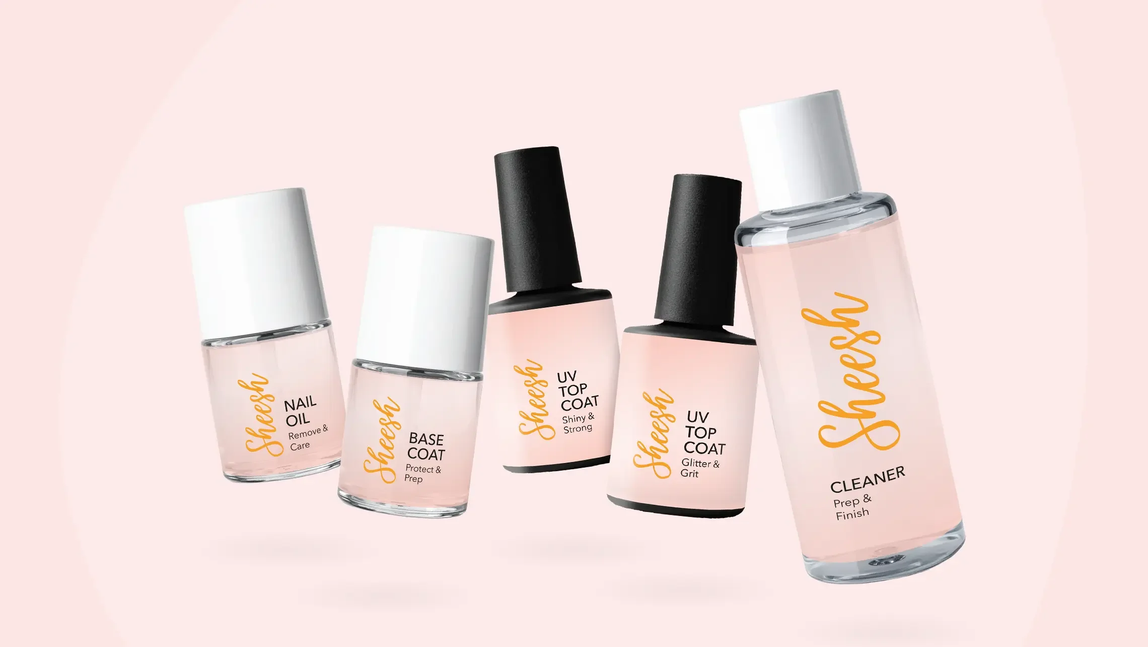 Gestaltet wurden die Labes für UV Top Coat, Base Coat, Nail Cleaner, Nail Oil und Nail Care Pen.